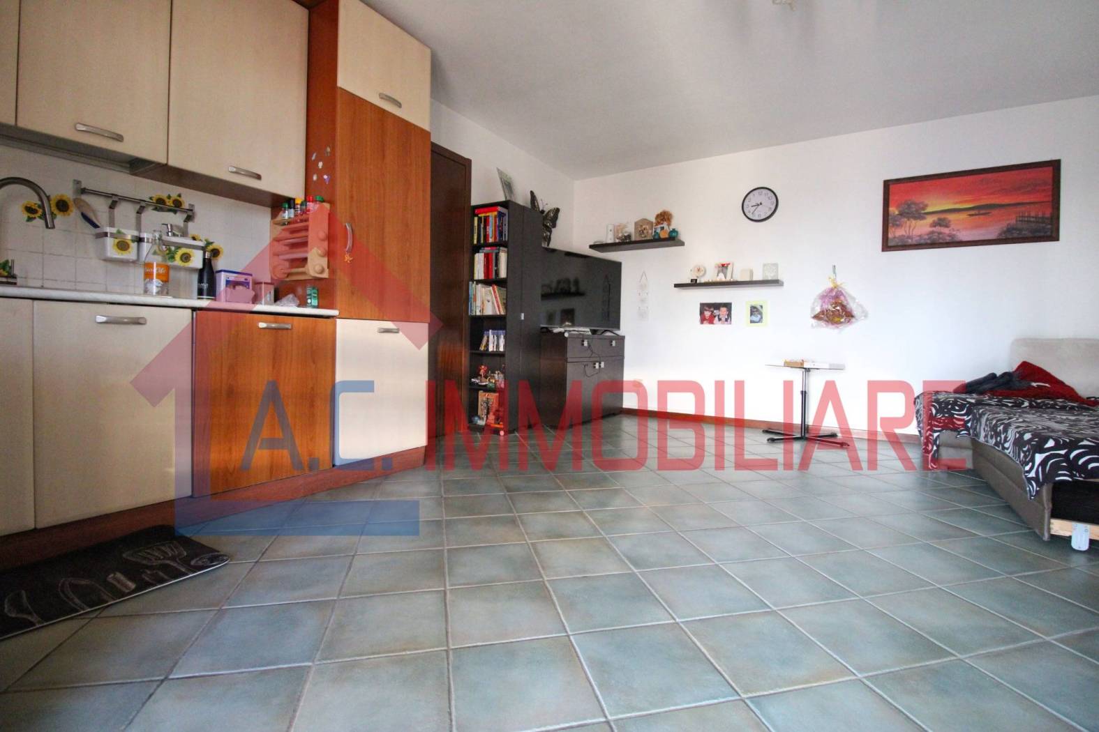 L'ingresso si apre su un disimpegno ben distribuito, dal quale si accede alla cucina, al bagno con doccia e all'ampio soggiorno che, grazie al suo affaccio sul balcone, risulta estremamente luminoso e arioso.