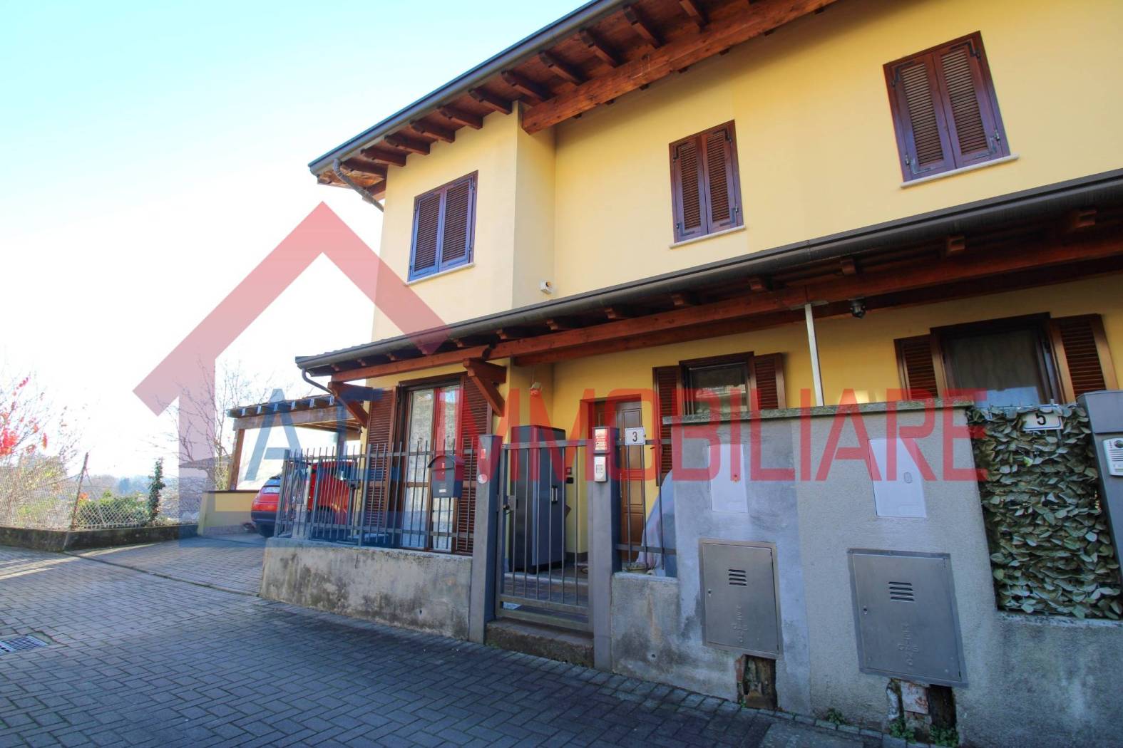 In contesto verdeggiante e particolarmente riservato, proponiamo elegante villa a schiera di testa libera su tre lati, situata in una via privata che garantisce tranquillità e privacy pur rimanendo a pochi passi dai principali servizi del paese.